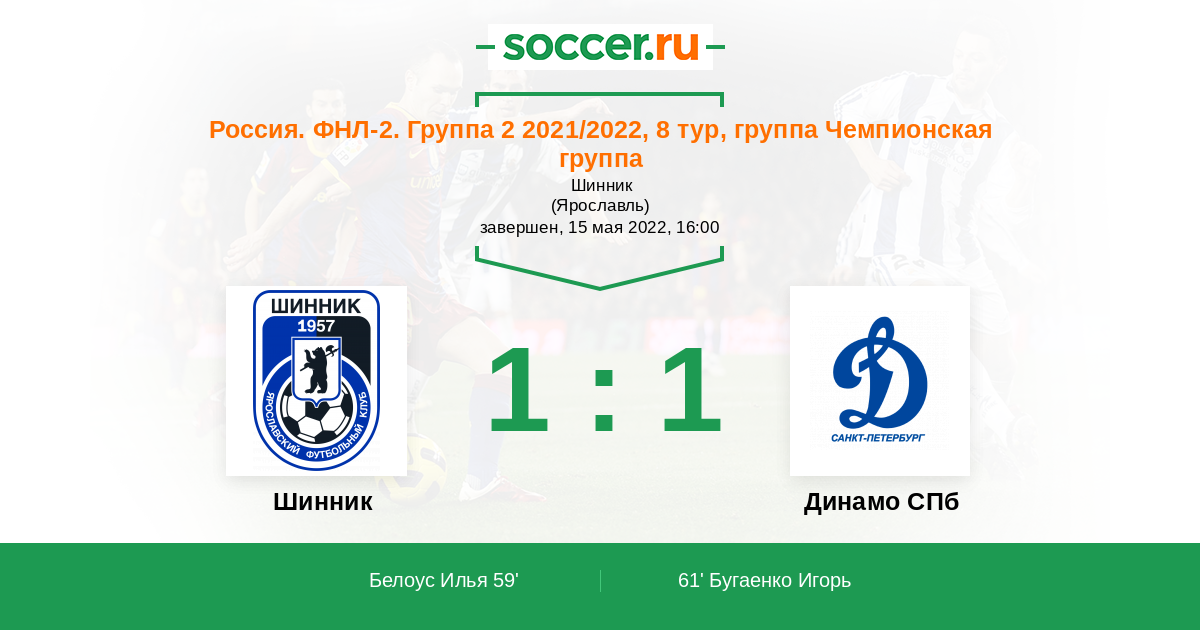 Протокол матча Шинник против Динамо СПб