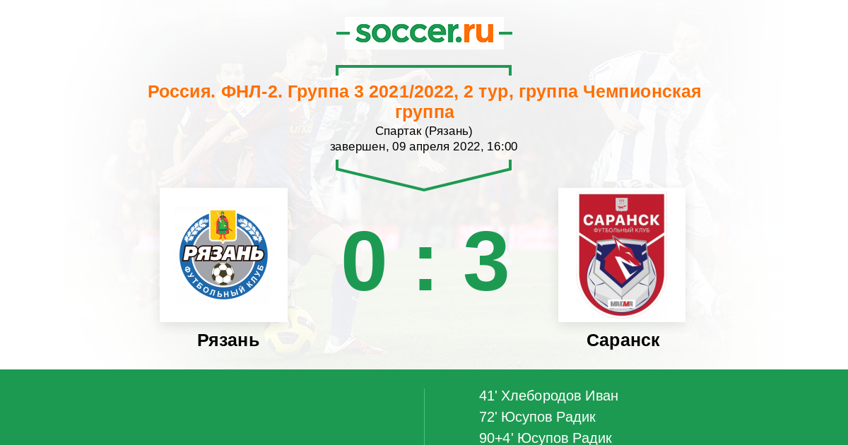 Протокол матча Рязань против Саранск