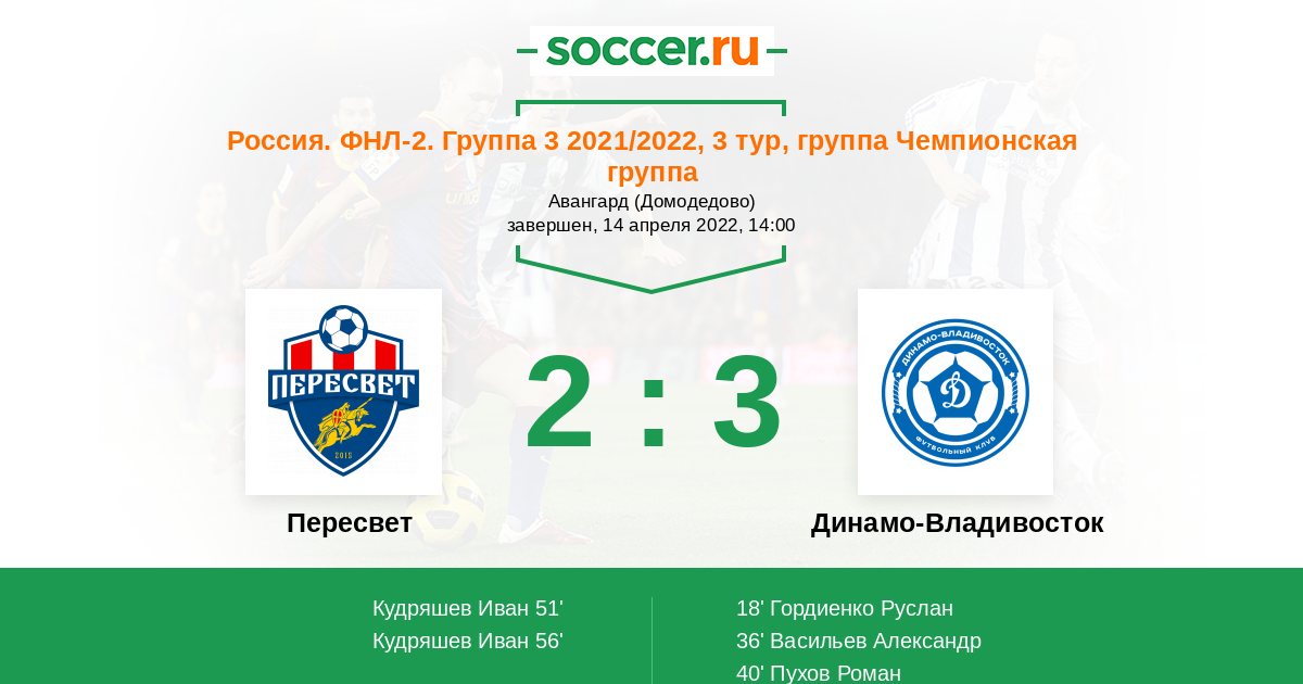 Протокол матча Пересвет против Динамо Владивосток
