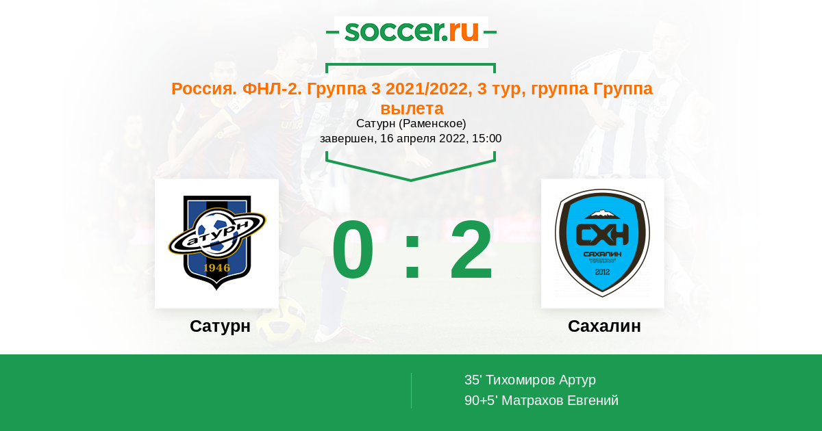 Протокол матча Сатурн против Сахалин