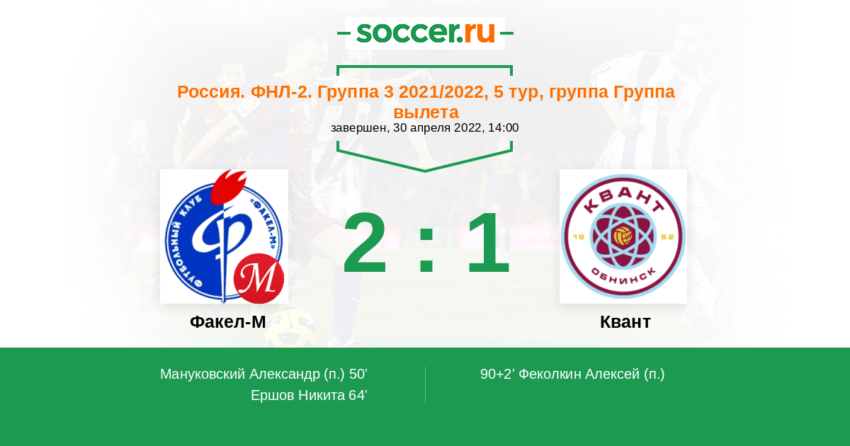 Протокол матча Факел-М против Квант