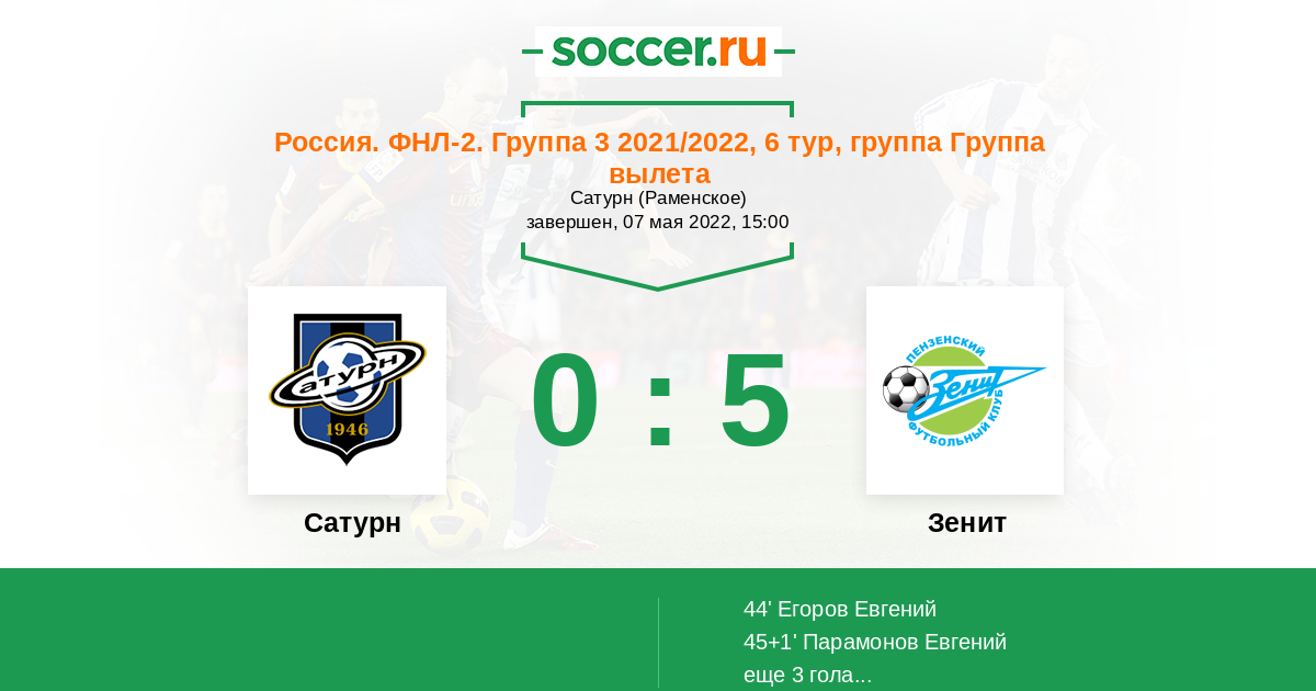 Протокол матча Сатурн против Зенит