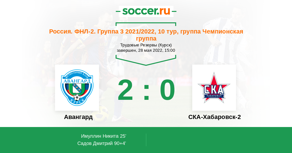 Протокол матча Авангард против СКА-Хабаровск-2