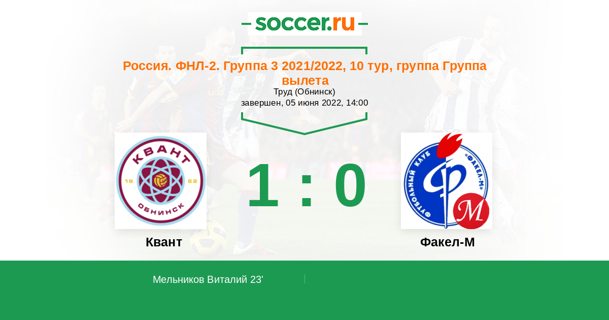 Протокол матча Квант против Факел-М