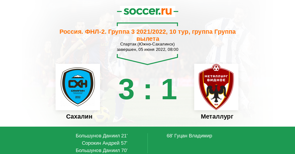 Протокол матча Сахалин против Металлург
