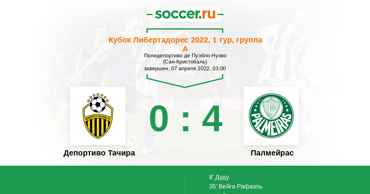 Протокол матча Депортиво Тачира против Палмейрас