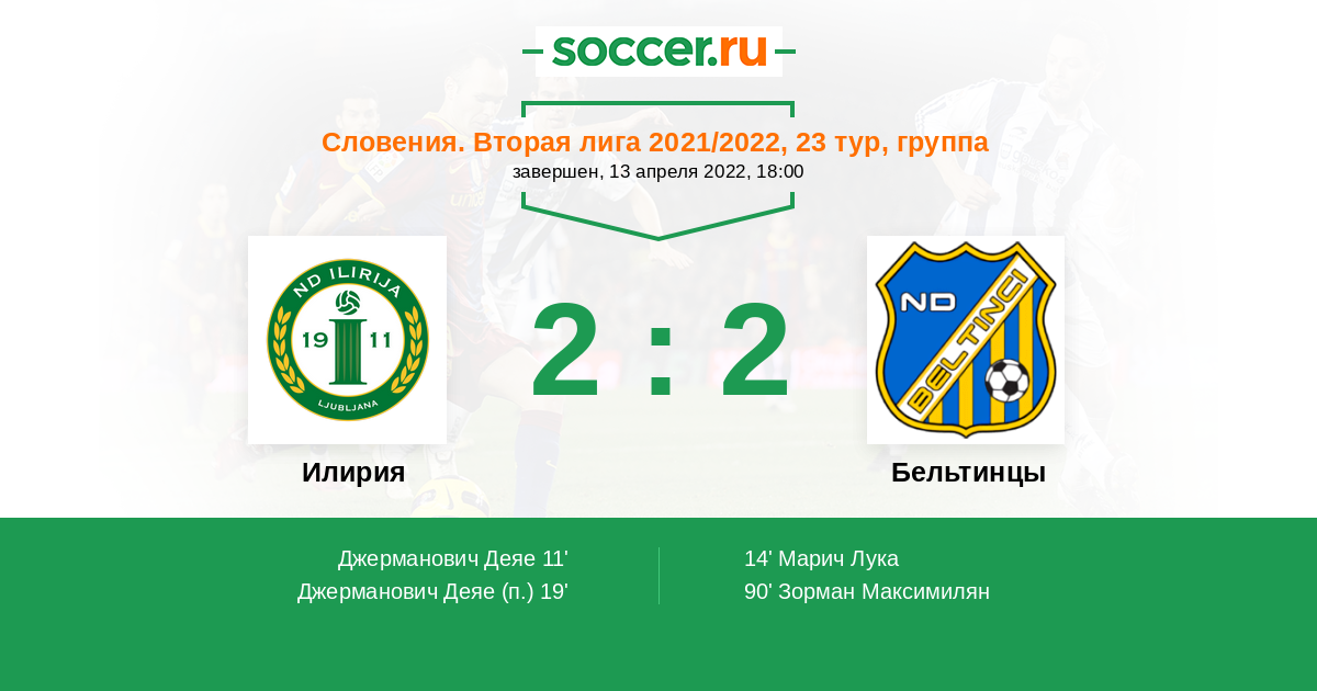 Протокол матча Илирия против Бельтинцы