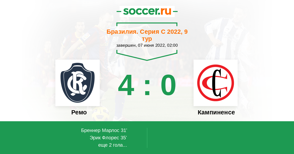 Протокол матча Ремо против Кампиненсе