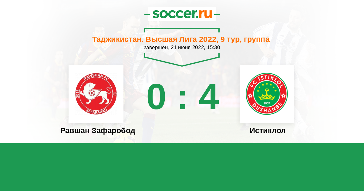 История матча Равшан Зафаробод против Истиклол