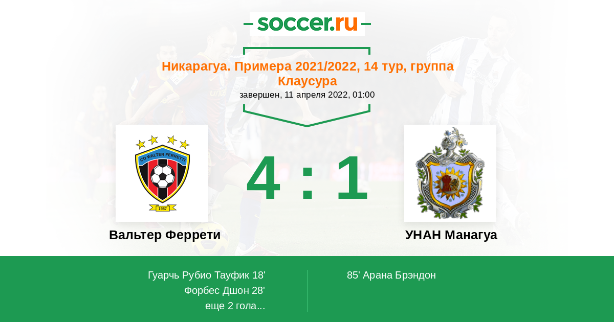 Протокол матча Вальтер Феррети против УНАН Манагуа