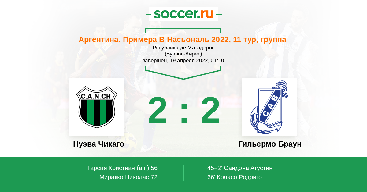 Протокол матча Нуэва Чикаго против Гильермо Браун
