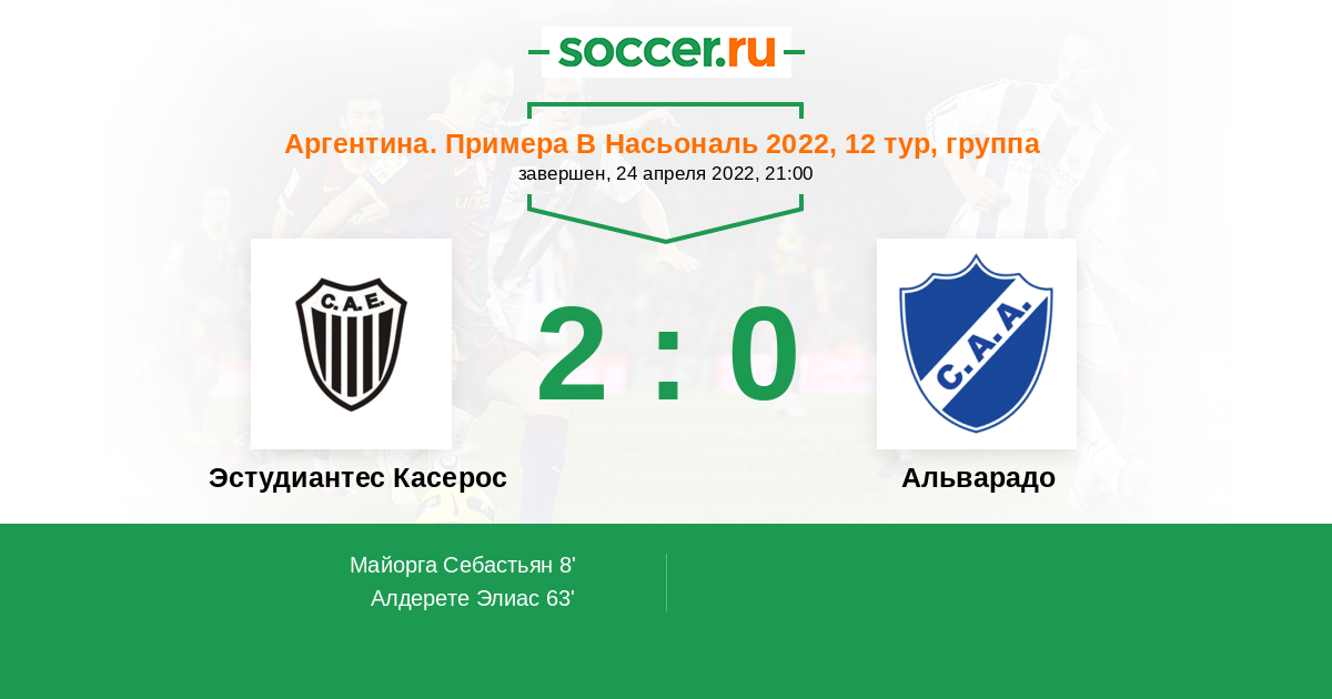 Протокол матча Эстудиантес Касерос против Альварадо