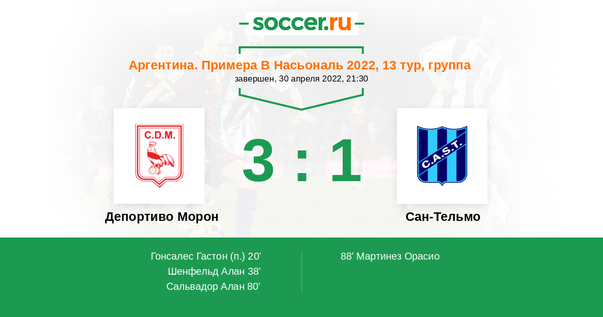 Протокол матча Депортиво Морон против Сан-Тельмо