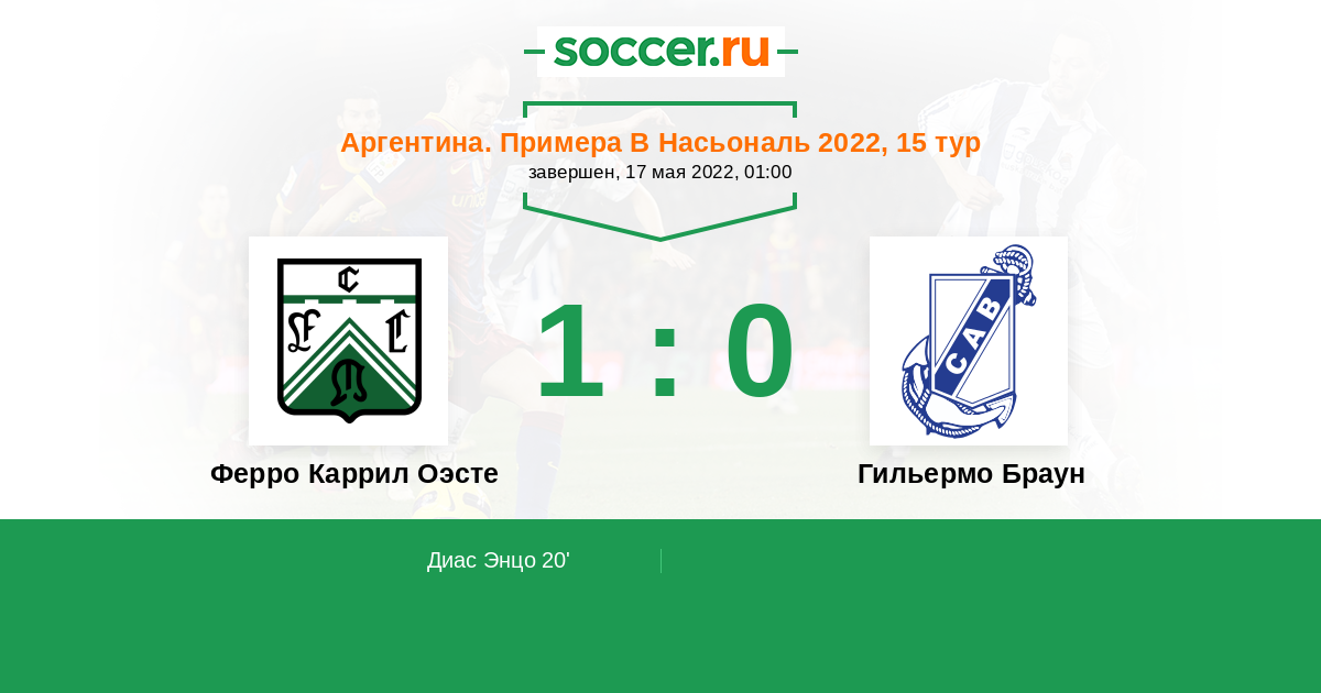Протокол матча Ферро Каррил Оэсте против Гильермо Браун