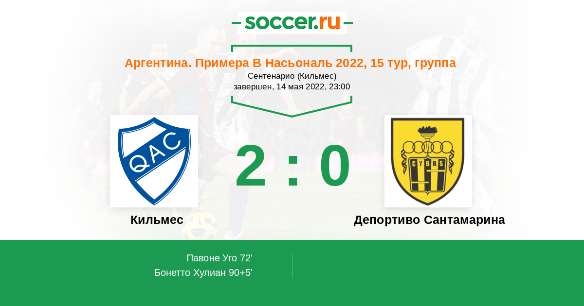 Протокол матча Кильмес против Депортиво Сантамарина