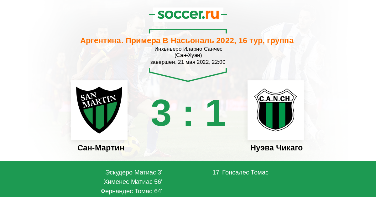 Протокол матча Сан-Мартин против Нуэва Чикаго