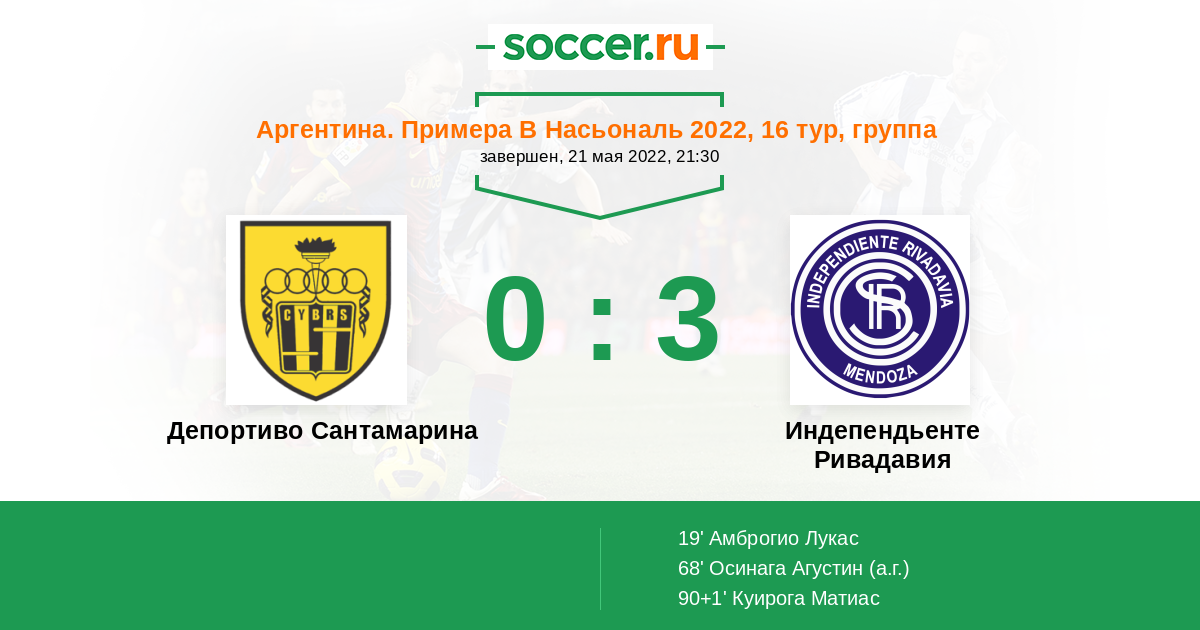 Протокол матча Депортиво Сантамарина против Индепендьенте Ривадавия