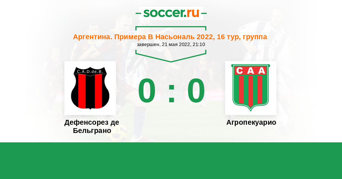Протокол матча Дефенсорез де Бельграно против Агропекуарио
