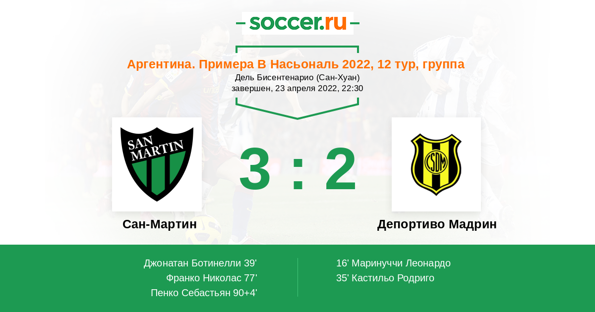 Протокол матча Сан-Мартин против Депортиво Мадрин