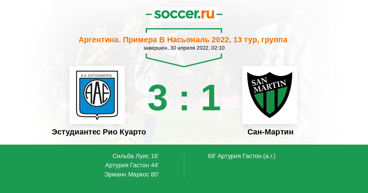 Протокол матча Эстудиантес Рио Куарто против Сан-Мартин