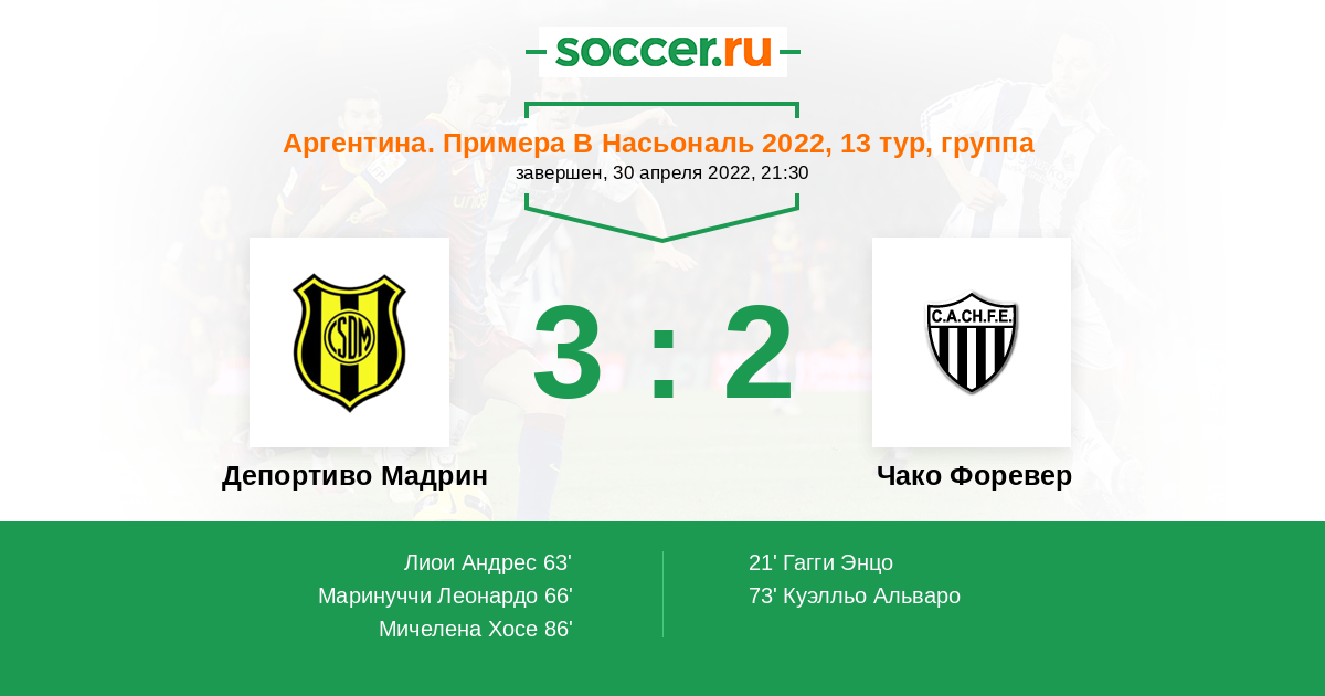Протокол матча Депортиво Мадрин против Чако Форевер