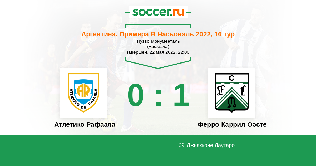 Протокол матча Атлетико Рафаэла против Ферро Каррил Оэсте