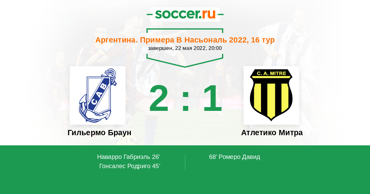 Протокол матча Гильермо Браун против Атлетико Митра