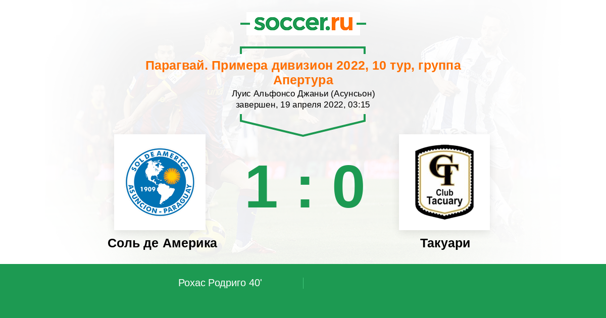 Протокол матча Соль де Америка против Такуари
