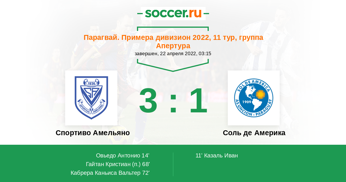 Протокол матча Спортиво Амельяно против Соль де Америка