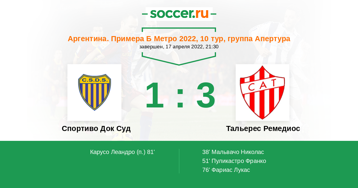 Протокол матча Спортиво Док Суд против Тальерес Ремедиос