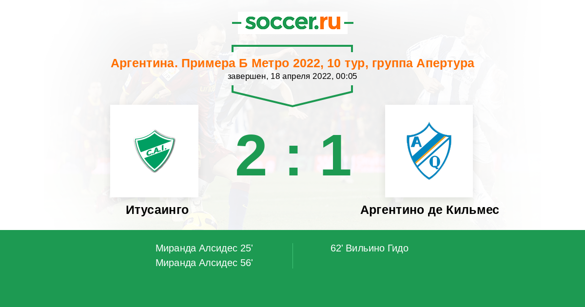 Протокол матча Итусаинго против Аргентино де Кильмес