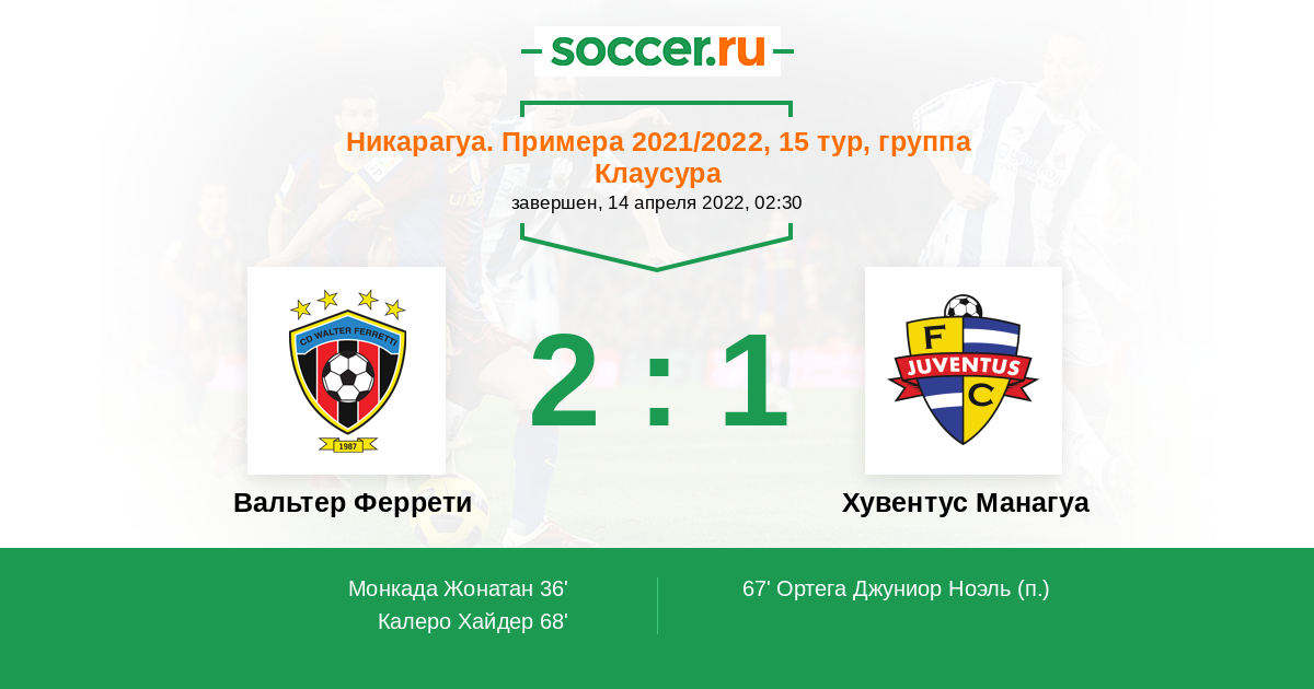 Протокол матча Вальтер Феррети против Хувентус Манагуа