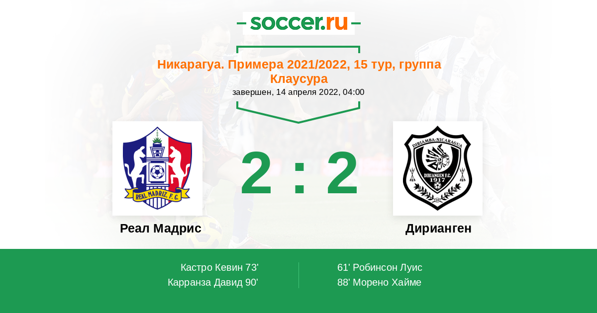 Протокол матча Реал Мадрис против Дирианген