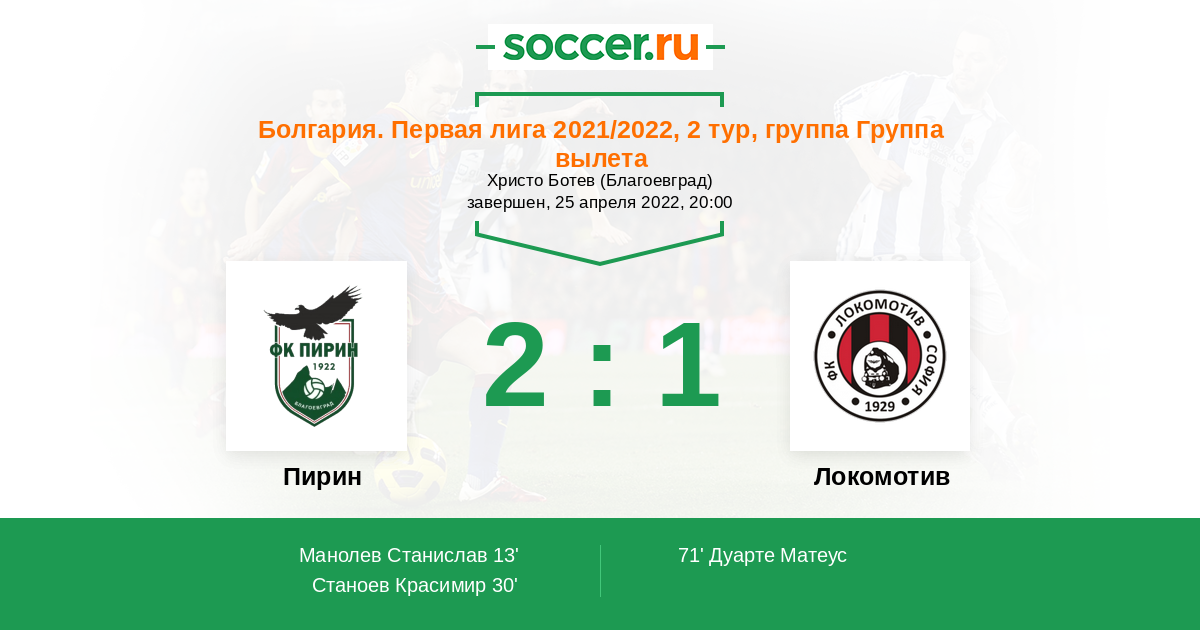 71' (2:1) Дуарте Матеус (89) (Атанасов Стойчо (2))