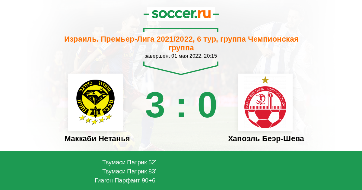 Протокол матча Маккаби Нетанья против Хапоэль Беэр-Шева
