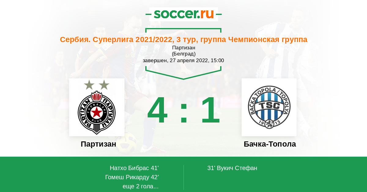 Протокол матча Партизан против Бачка-Топола