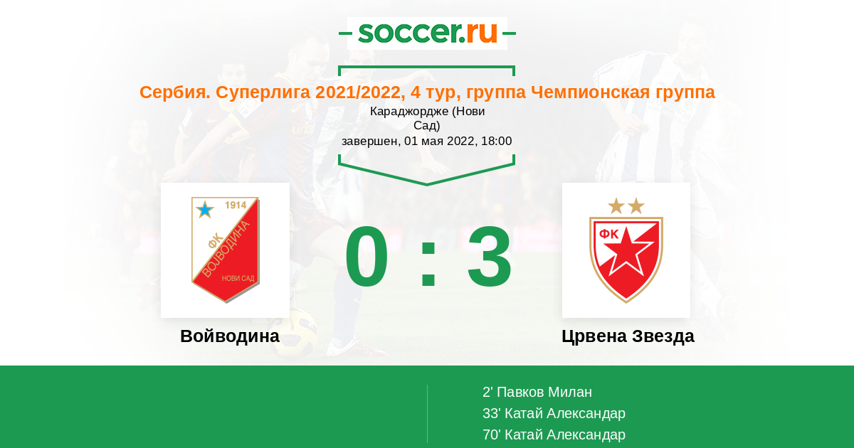 Протокол матча Войводина против Црвена Звезда