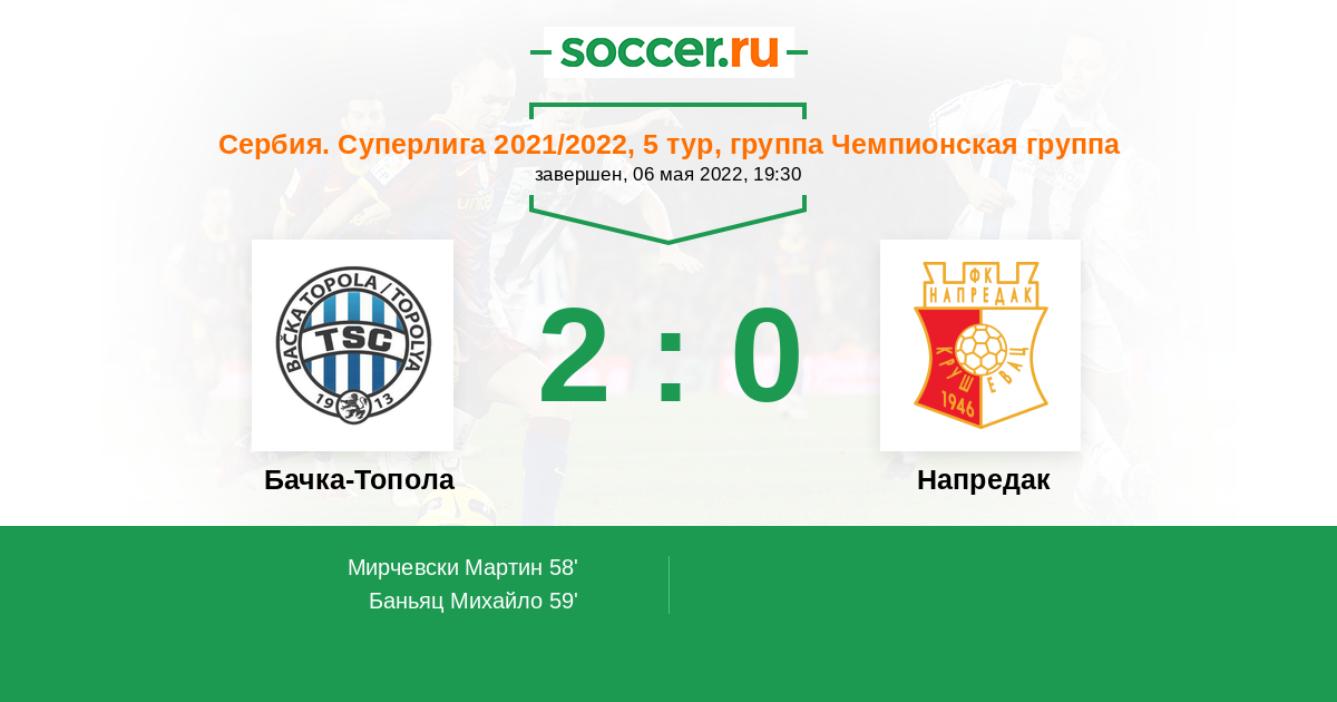 Протокол матча Бачка-Топола против Напредак