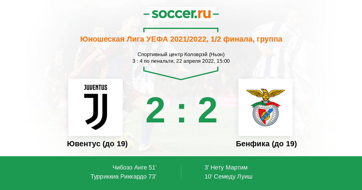 Протокол матча Ювентус (до 19) против Бенфика (до 19)