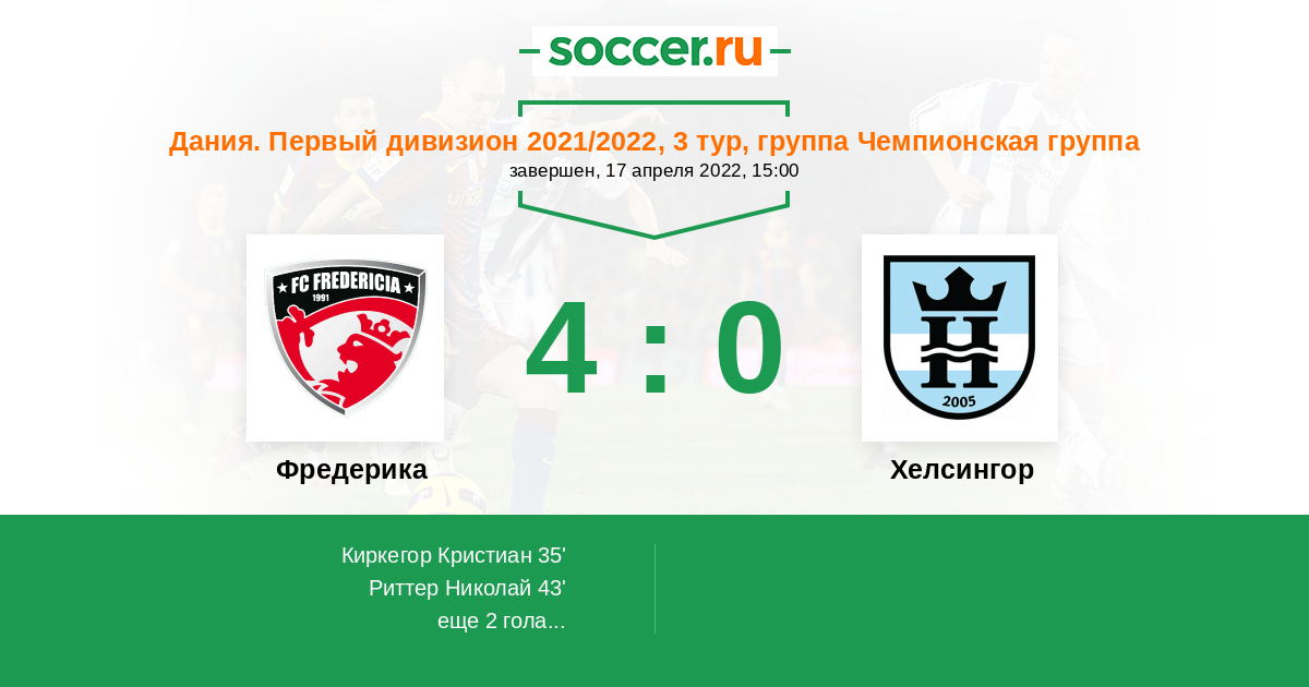 Протокол матча Фредерика против Хелсингор