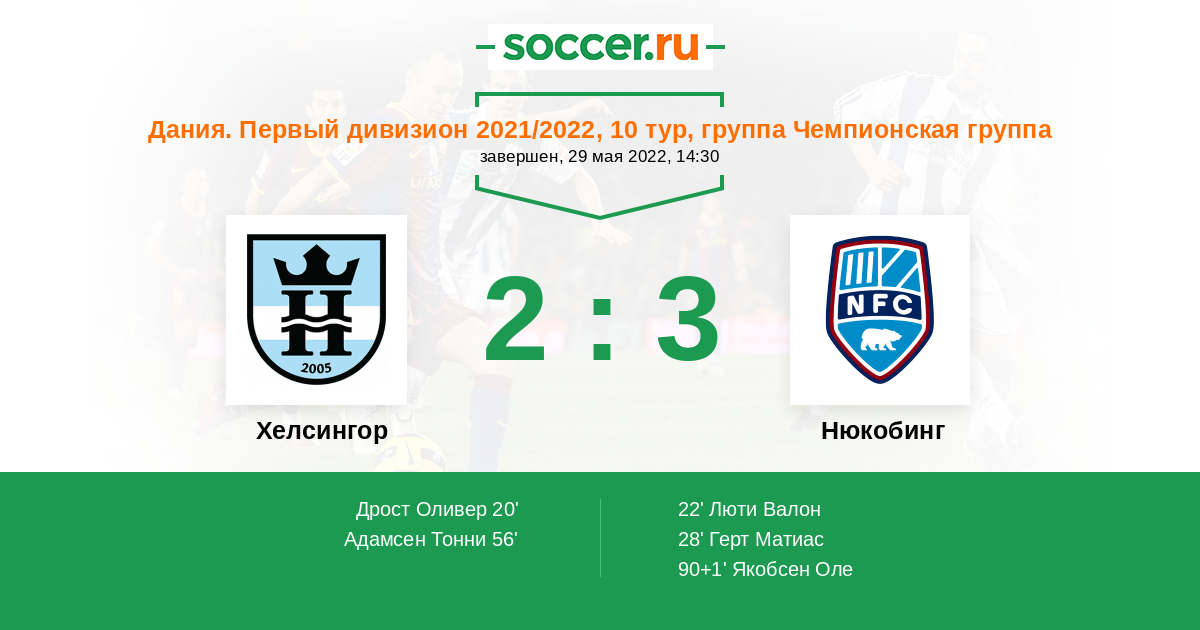 Протокол матча Хелсингор против Нюкобинг