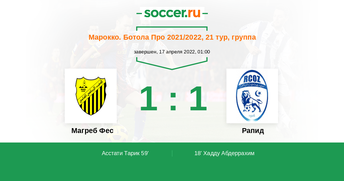 Протокол матча Магреб Фес против Рапид