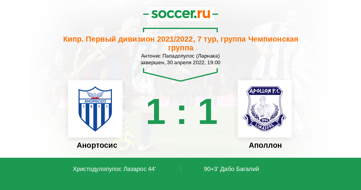 Протокол матча Анортосис против Аполлон
