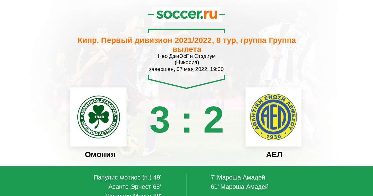 68' (2:2) Асанте Эрнест (88) (Захариу Панайотис (20))