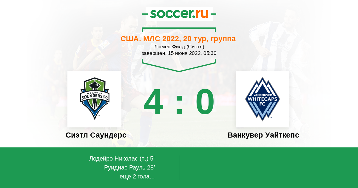 Протокол матча Сиэтл Саундерс против Ванкувер Уайткепс
