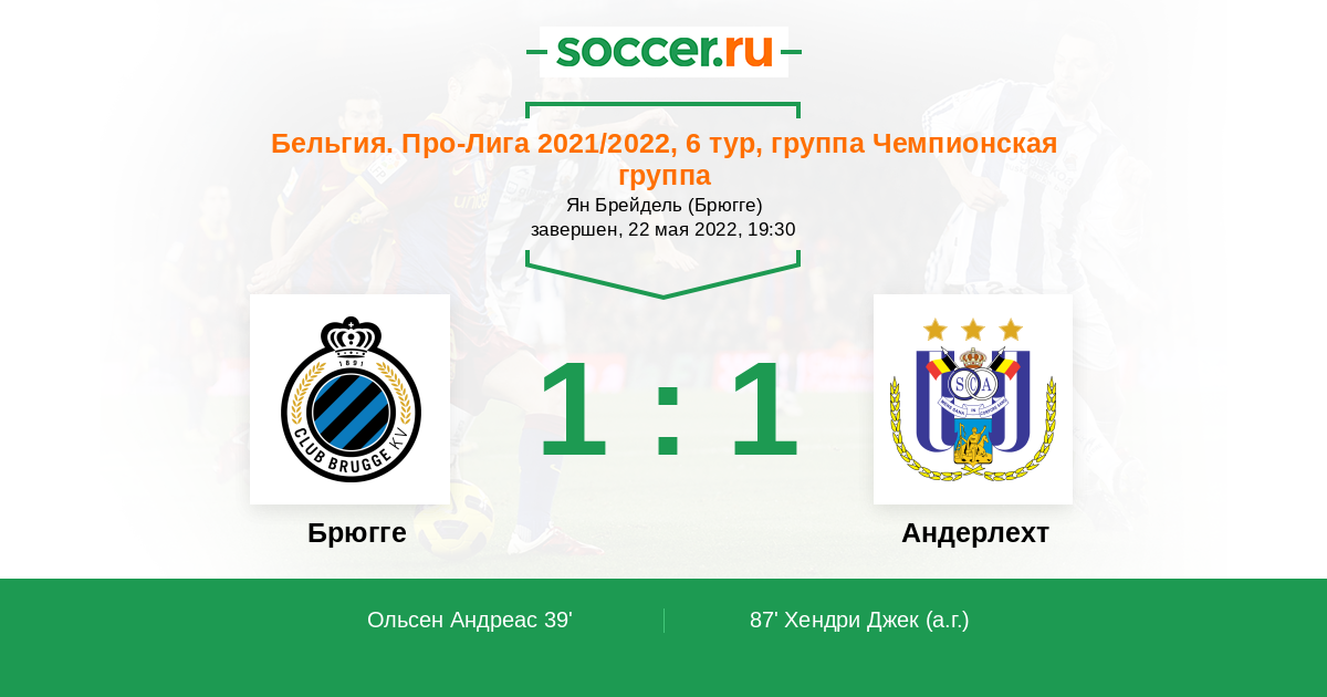 Протокол матча Брюгге против Андерлехт