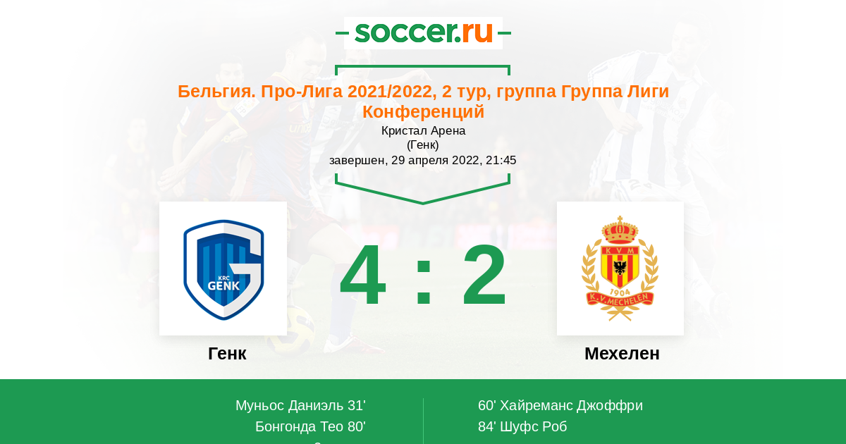 Протокол матча Генк против Мехелен
