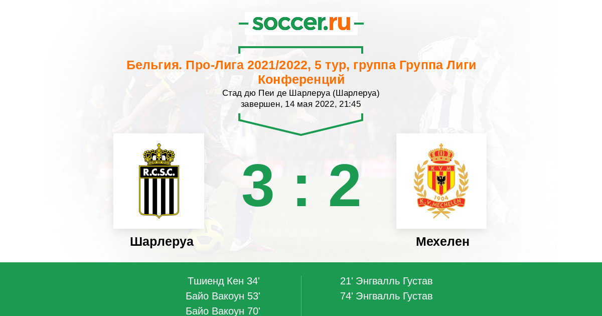 Протокол матча Шарлеруа против Мехелен