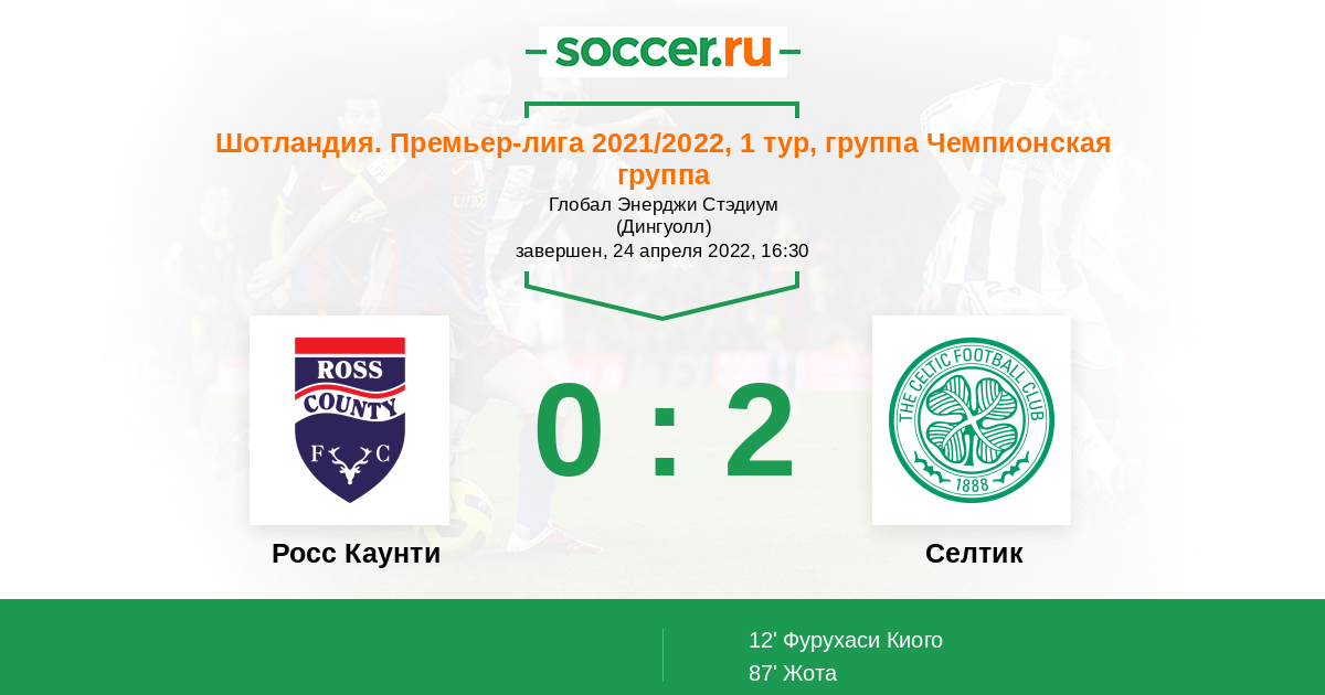 Протокол матча Росс Каунти против Селтик
