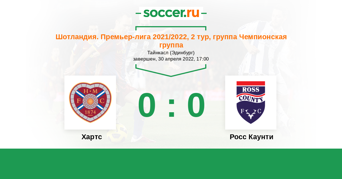 Протокол матча Хартс против Росс Каунти
